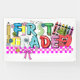 The image features the word "First Grade" written in a colourful and playful style. Each letter is uniquely designed with different patterns and elements related to school and creativity.