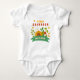 Share the news with the people you love most and who will love your baby the most - the grandparents to be! Make them feel really special with a pregnancy announcement designed just for them on this adorable baby bodysuit. This gender-neutral fall grandparent pregnancy announcement is designed with bright and colourful sunflowers and other flowers, greenery and foliage. First Grandchild is written above the floral display and the due date is written below on a green banner. All of the text is editable. This cute baby bodysuit will warm their hearts when they see it!