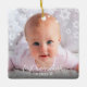This is a lovely ornament, and great that you personalise the back with details of birthday, weight, etc.. My only tiny disappointment is the "My First" doesn't stand out very well on the background. More than happy with the printing of the photo and the writing on the back.