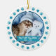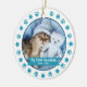 “My First Hanukkah.” Celebrate your new pet’s arrival this past year! A turquoise blue banner with your pet’s name and year in whimsical white typography overlays your kitten or puppy’s custom photo. A playful border of turquoise blue paw prints and Stars of David against white surrounds it. Feel the warmth and joy of the holiday season whenever you display this simple, stylish and modern personalised photo keepsake ornament. Choice of ceramic, metal, glass or premium metal frame materials and a circle or square shape. Perfect for the newly proud pet parent(s)!