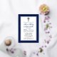 Elegant Navy Blue and Gold First Holy Communion Invitation with Cross. Gold Foil Frame. Gold Foil Cross. Striped Back.