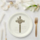 First Holy Communion Cross with Dove and Heart on Ivory Background Elegant Paper Party Plates