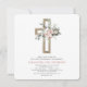 Daughter's Dusty Rose Floral and Eucalyptus - Cross Botanical Sage Green Greenery Watercolor Religious First (1st) Holy Communion Invitations.