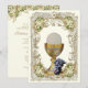 Celebrating the Sacrament of First Holy Communion is a wondrous occasion. This traditional Catholic custom-designed vintage First Holy Communion Invitation with a gold chalice and the Holy Eucharist with white and gold floral accents overlaid on a vintage frame is sure to express the beauty and solemnity of this special day. All text and fonts can be easily modified.