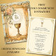 Celebrating the Sacrament of First Holy Communion is a wondrous occasion. This traditional Catholic custom-designed vintage First Holy Communion Invitation features a beautiful image of the Chalice and Host, the Eucharist overlaid on an ornate gold frame, accented with a floral design. All text and fonts can be easily modified.