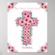 First Holy Communion Girl Pink Flower Cross Chic Poster