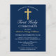 First Holy Communion Gold Cross Blue Invitation Postcard