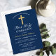 Invite your family and friends to your son's 1st Communion with this Elegant Gold Navy Blue Cross First Holy Communion Postcard Invitation. This design features a beautiful, simple golden cross against a classic dark blue background. Personalise the colour and font and change the date and text to suit your needs. Perfect for a boy's 1st Communion.