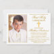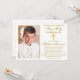 Modern Elegant First Holy Communion Invitation with Cross and Photo. Gold Frame.