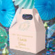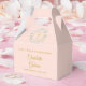 Elegant floral first holy communion favour box featuring a laurel greenery garland and gold cross with your event details set in chic gold typography on a blush pink background. You can personalise with your own thank you message on the reverse. A perfect way to say thank you to your guests! Designed by Thisisnotme©