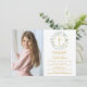 First Holy Communion Greenery Gold Cross Photo Invitation