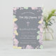 This elegant and pretty first holy communion invitation features an abstract pink, purple and green floral border and a cross. Perfect for a girl's special religious occasion, this invite can be customised for your child's event or party by changing the background colour and text to your liking.