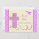 Send out a cheerful open house invitation for your daughter's First Holy Communion shown on basic paper, with this invitation in pink and purple stripes, with a watercolored Cross and dove. If you require any other items in this design style such as RSVP cards, magnets, stickers, album etc., please email me your request. Existing matching items are shown below.