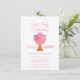 This modern and elegant First Holy Communion Invitation features a chalice, wheat, and host - symbols of the Eucharist. The words "First Holy Communion" are written in an elegant pink font. The text and background colour and text can be customised to your liking. A perfect way to invite guests to your daughter's special religious occasion.