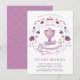 This pretty and modern 4.5" x 6.25" First Holy Communion invitation card features a purple chalice and wafer (holy communion) surrounded by a floral wreath and the words "First Communion" written in an elegant font. Ideal for your girl's special religious occasion, it can be customised to your liking with your child’s name and event information.