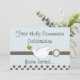 First Holy Communion Invitations in light blue with chocolate trim and white dove holding an olive branch design. Front and Back are customisable.