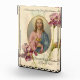 Now you can create a cherished remembrance with this beautiful image of Jesus holding the host. All fonts and texts can be modified.