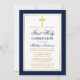 Elegant Navy Blue and Gold First Holy Communion Invitation with Cross. Gold Frame. Gold Cross. Photo Back.