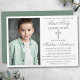Modern Elegant Sage Green and Silver First Holy Communion Invitation with Cross and Photo.