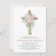 Daughter's Dusty Rose Pink Floral and Eucalyptus - Cross Botanical Sage Green Greenery Watercolor Religious First (1st) Holy Communion Invitations.