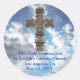 A decorative cross on an original professional photograph of blue skies and white clouds and water below is a nice keepsake to remember this special holy day. "First Holy Communion with room for the city and state" text is in blue with the date which is easily personalised. Add any name as well to personalise this unique cool sticker or envelope seal even more. See other 1st Communion stickers and products at the MVDesigns store. Shown is the popular round shape sticker.