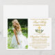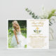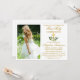 Modern Elegant First Holy Communion Invitation with Cross and Photo. Watercolor Floral includes peonies white flowers and botanical greenery. Gold Script.
