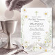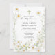 A delicate wreath of small white daisies nestled in light sage green foliage frames your child's First Holy Communion details. Contemporary wildflower design is open and airy. A small sage green cross is at the top.