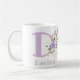 Ladies personalised coffee mug. Design features Monogram & Name with Flowers either side in a water colour pastel style. Initial is the letter D. Davina
