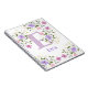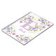 Design features the baby's Monogram & Name with Flowers either side in a water colour pastel style. Initial is the letter E. Eva