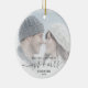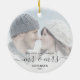 First Married Christmas Custom Photo Grey Script Ceramic Tree Decoration