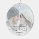 Commemorate the first Christmas of your marriage with this beautiful modern keepsake ornament. The charcoal grey text reads "Our first Christmas as Mr & Mrs," with the words "Mr & Mrs" in elegant handwriting script with flourishes before and after. Replace the sample image with your favourite photo, and add your last name and the year. A white gradient filter helps make the text pop.
