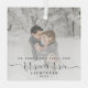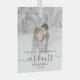 Commemorate the first Christmas of your marriage with this beautiful modern keepsake ornament. The charcoal grey text reads "Our first Christmas as Mr & Mrs," with the words "Mr & Mrs" in elegant handwriting script with flourishes before and after. Replace the sample image with your favourite photo, and add your last name and the year. A white gradient filter helps make the text pop.