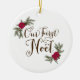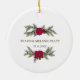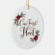 Commemorate your first Christmas as a married couple with this ornament featuring pine boughs and poinsettias and the phrase "Our first noel". Back is personalised with your names and wedding date. Makes a great Christmas gift for a newlywed couple!