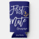 Ahoy maid of honour! Keep your canned drinks cold with this stylish "First Mate" seltzer can cooler featuring a modern typography design adorned with a gold effect anchor, on a blue background which can be customised with the bride's name, wedding date as well as the bridesmaid's name. Makes a great bridal shower/bachelorette party keepsake! For questions or requests regarding this design, please contact us via the chat; we'd be happy to help!