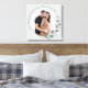 Wrapped photo canvas for First Mother's day or edit the text for any other occasion. The photo template is set up for you to add your picture, which is displayed in round shape. This elegant and delicate design has a floral photo frame with pink wild flowers and greenery. If you have any difficulty with picture placement, you could try cropping your photo to a square before uploading.