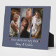 Personalise a unique keepsake for a new mum celebrating her first Mother's Day with this blue three photo collage tabletop plaque. Plaque design features three photo placements in panel form with modern typography and elegant script and two red hearts. Perfect photo keepsake for mum's celebrating their first Mother's Day.