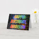 This vibrant, multicolored and fun birthday greeting card design features the message "HAPPY BIRTHDAY," and the common first name "ADDISON" with the letters having a colourful rainbow spectrum like gradient colouring pattern. The background of the front also features a colourful bursting fireworks inspired pattern. The inside features a personalised greeting message, or could perhaps be cleared and left blank if a message is to be written by hand instead. A greeting card like this might be a fun way to send a personalised birthday message to somebody named Addison. [~Z0000350]