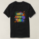 This vibrant and fun shirt design has an exciting bursting celebratory fireworks inspired pattern, and the message "HAPPY BIRTHDAY, ARIA" having a colourful rainbow spectrum inspired gradient pattern. Shirts like this might be worn by the attendees at a party being held in celebration of the birthday of somebody who is named Aria. [~Z0000453]