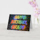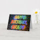 This fun, vibrant, multicolored birthday greeting card design features the message "HAPPY BIRTHDAY," and the common first name "BRADY" with the letters having a colourful rainbow spectrum like gradient colouring pattern. The background of the front also features a colourful pattern inspired by the appearance of bursting fireworks. The inside features a custom greeting message, or could perhaps be cleared and left blank if a message is to be written by hand instead. A birthday greeting card like this might be a fun way to acknowledge the birthday of somebody named Brady. [~Z0000350]