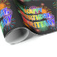 This exciting and vibrant birthday-themed wrapping paper design has the message "HAPPY BIRTHDAY, BRITTANY" having a colourful rainbow spectrum inspired gradient pattern, and a fun bursting celebratory fireworks inspired background pattern. Colourful wrapping paper like this might be used when wrapping presents that are being given in celebration of the birthday of somebody named Brittany. [~Z0000456]