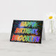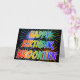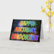 This multicolored and fun birthday greeting card design features the message "HAPPY BIRTHDAY," and the common first name "BROOKLYN" with the letters having a colourful rainbow spectrum like gradient colouring pattern. The background of the front also features a colourful pattern inspired by the look of bursting celebratory fireworks. The inside features a customised greeting message, or could perhaps be cleared and left blank if a message is to be written by hand instead. A greeting card like this might be a fun way to send a personalised birthday message to somebody named Brooklyn. [~Z0000350]