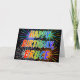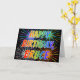 This vibrant, multicolored and fun birthday greeting card design features the message "HAPPY BIRTHDAY," and the common first name "BRUCE" with the letters having a colorful rainbow spectrum like gradient coloring pattern. The background of the front also features a colorful bursting fireworks inspired pattern. The inside features a custom greeting message, or could perhaps be cleared and left blank if a message is to be written by hand instead. A birthday greeting card like this might be a fun way to acknowledge the birthday of somebody named Bruce. [~Z0000350]