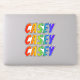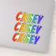 This fun, vibrant, and exciting sticker design features the common first name or given name "CASEY", with the letters of the name having a colourful rainbow spectrum inspired gradient colouring pattern. It might be a fun present to give to somebody who is named Casey. [~Z0000361]