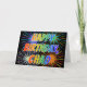 This vibrant, multicolored and fun birthday greeting card design features the message "HAPPY BIRTHDAY," and the common first name "CHAD" with the letters having a colourful rainbow spectrum like gradient colouring pattern. The background of the front also features a colourful pattern inspired by the appearance of bursting fireworks. The inside features a personalised greeting message, or could perhaps be cleared and left blank if a message is to be written by hand instead. A greeting card like this might be a fun way to send a personalised birthday message to somebody named Chad. [~Z0000350]