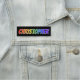 This fun, vibrant, multicolored name tag design features the common first name "CHRISTOPHER", with the letters of the name having a colourful rainbow spectrum like gradient colouring pattern, on a black coloured background. A nametag like this might be worn by an employee, a staff member or a volunteer whose given name is Christopher, to help identify the wearer to customers or other people. [~Z0000344]