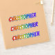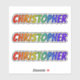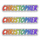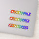 This vibrant, exciting, and multicolored sticker design features the common first name or given name "CHRISTOPHER", with the letters of the name having a colourful rainbow spectrum like gradient colouring pattern. It might be a fun gift to give to somebody whose given name is Christopher. [~Z0000361]