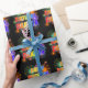 This lively and fun birthday-themed wrapping paper design has the message "HAPPY BIRTHDAY, DAKOTA" having a colourful rainbow spectrum inspired gradient pattern, and an exciting bursting celebratory fireworks inspired background pattern. Colourful wrapping paper like this might be used when wrapping birthday gifts that are being given to somebody named Dakota. [~Z0000456]