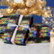 This exciting and vibrant birthday-themed wrapping paper design features the message "HAPPY BIRTHDAY, DEREK" having a colourful rainbow spectrum inspired gradient pattern, and a lively bursting celebratory fireworks inspired background pattern. Exciting wrapping paper like this might be used when preparing gifts being given to celebrate the birthday of somebody named Derek. [~Z0000456]