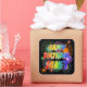This vibrant and fun birthday-themed sticker design features the message "HAPPY BIRTHDAY, JANET" having a colourful rainbow spectrum inspired gradient pattern, and a lively bursting celebratory fireworks inspired background pattern. Exciting stickers like this might be given as a birthday gift, or used while wrapping presents, or used as a birthday party decoration when celebrating the birthday of somebody named Janet. [~Z0000457]