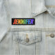 This fun, vibrant, multicolored name tag design features the common first name "JENNIFER", with the letters of the name having a colourful rainbow spectrum like gradient colouring pattern, on a black coloured background. A nametag like this might be worn by an employee, a volunteer, or a staff member whose first name is Jennifer, to help identify the wearer to customers or other people. [~Z0000344]